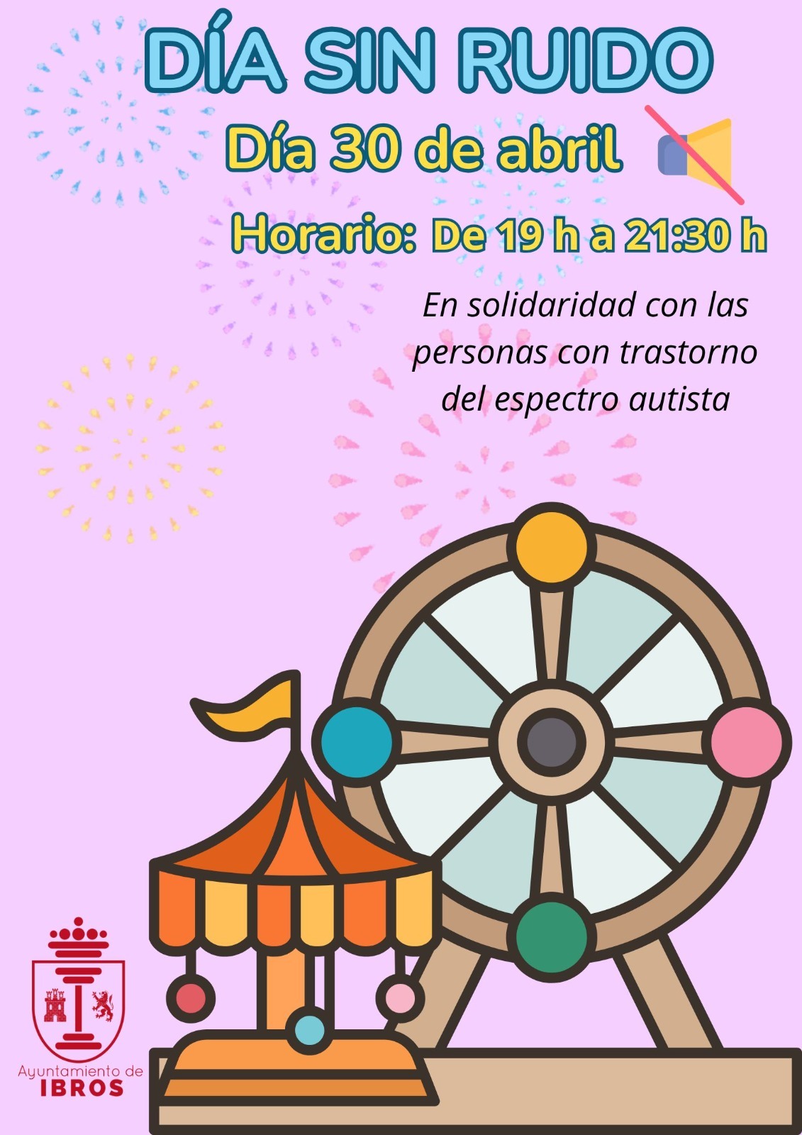La zona de atracciones del Recinto Ferial de Ibros contará con una hora sin ruido con el objetivo de que las personas con Trastorno del Espectro Autista particularidades auditivas u otros problemas sensoriales, puedan disfrutar de este espacio con total tranquilidad durante las 18:00 y 21:30 horas del miércoles 30 de Abril.