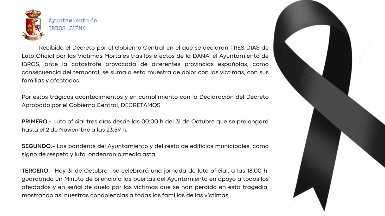 Luto Oficial Ayuntamiento de Ibros Oct 31, 2024 | Novedades | 0 Comentarios Enviar comentario Cancelar la respuestaLo siento, debes estar conectado para publicar un comentario.